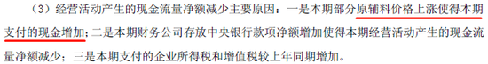 对此,公司给出了几点解释,其中存放央行款项增加和支付所得税、增值税两条显然不构成负面诱因,那么第一条“原辅料价格上涨”则应该就是经营现金流出现大幅流出的真正原因。